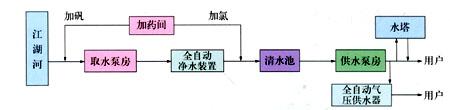 注:凈水裝置的出水標高為2.5米(相對標高),根據凈水裝置及清水池的管路布局及距離,計算其沿途及局部損失之和。以2.5米,減去此水力損失之和,即可決定清水池最高水位的相對標高值 。