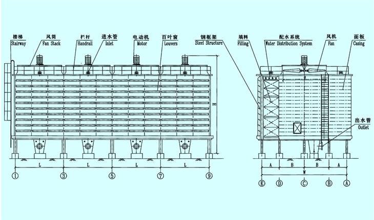 采用專為本系列冷卻塔設計的高效熱交換填料,其換熱面積大幅度提高,與原HBLD系列及原HBLCD系列相比,其占地面積大幅度下降,由于結構設計的優(yōu)化及采用鋼結構,運轉重量也大大降低。