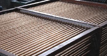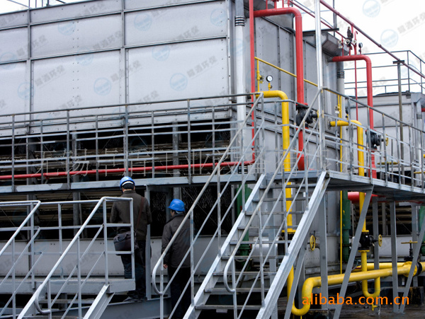 冷卻器→冷卻器為冷卻塔的關(guān)鍵部件,內(nèi)部通冷卻介質(zhì),外部經(jīng)過風冷及水的噴淋來達到冷卻要求;冷卻器采用國際標準的T2脫酸紫銅管制作,全部為裸紫銅圓管,不加翅片,以保證其冷卻效果;銅管與彎頭之間的連接采用銀焊條焊接,焊點少且質(zhì)量好